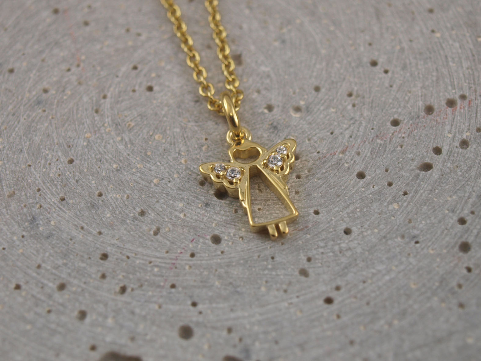 Kleiner Engel Anhänger in Gold mit kleinen Kristallen für eine Kette als besonderes Geschenk