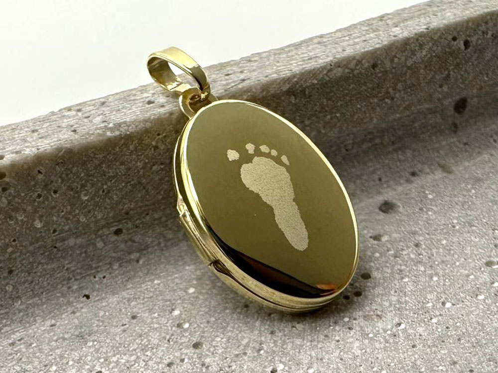 Ovales Medaillon aus vergoldetem Silber für zwei Fotos, Gravur-Option