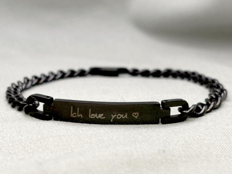 Dieses Armband wurde aus Titan gefertigt und ist somit auch für Allergiker geeignet. Das Schild kann mit einer individuellen Gravur versehen werden und es besteht auch die Möglichkeit, in zwei Zeilen zu gravieren. Dieses Armband ist in verschiedenen Farben erhältlich: Schwarz, Gold, Roségold und Silber. Das Armband eignet sich als Armband für Herren und Damen.