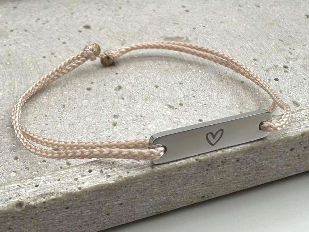 - Größenverstellbares Armband aus Segeltau mit eingefasstem Gravur-Plättchen