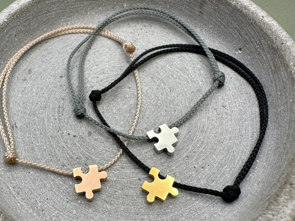 Armband mit einer Puzzle Perle, größenverstellbar mit Schiebeknoten