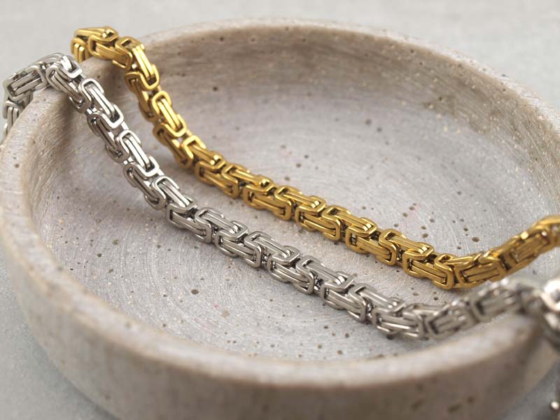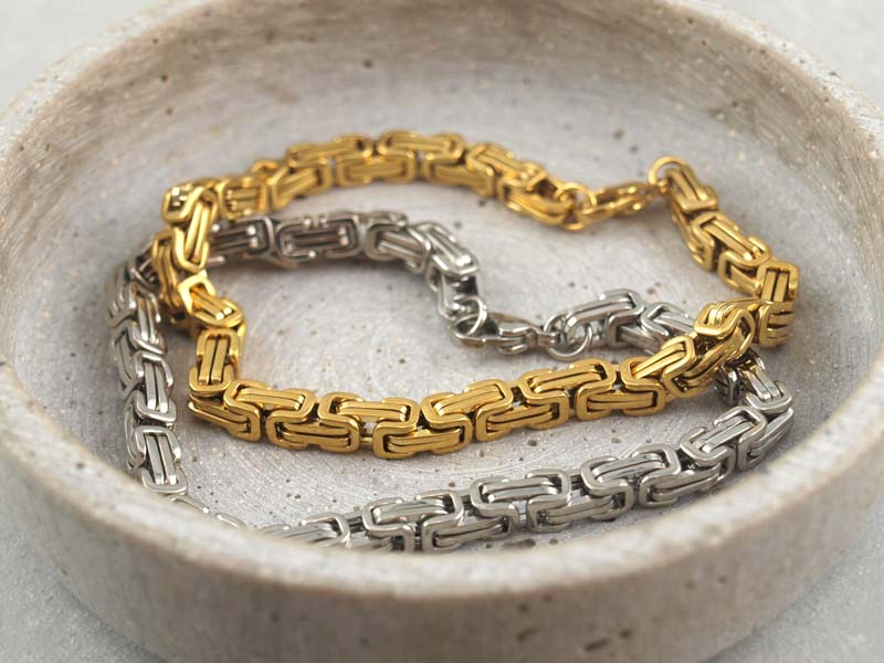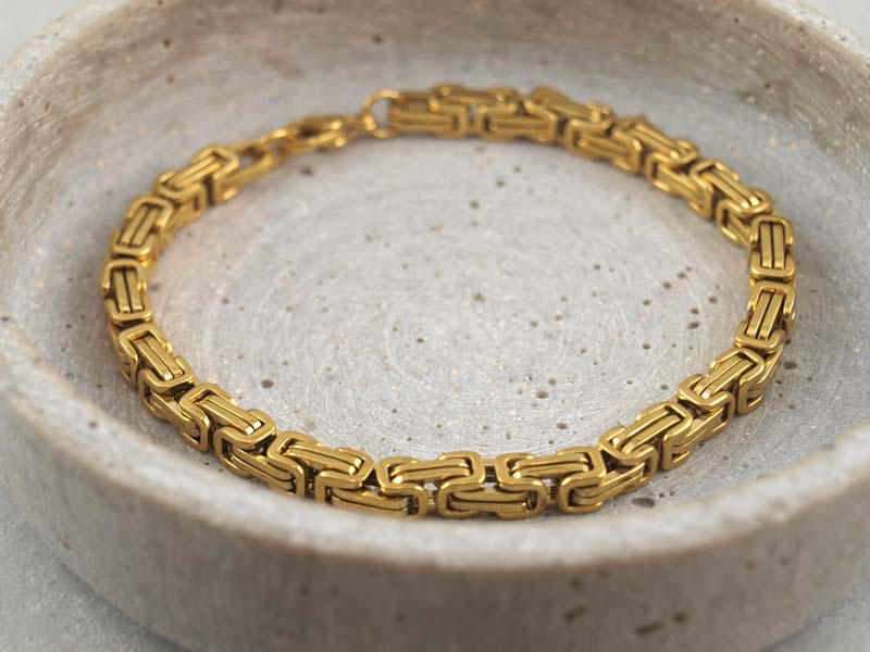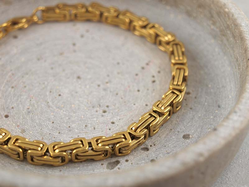 Erhältlich ist das Königsarmband in klassischem Silberton oder in goldfarbener Ausführung mit hochwertiger PVD Beschichtung.