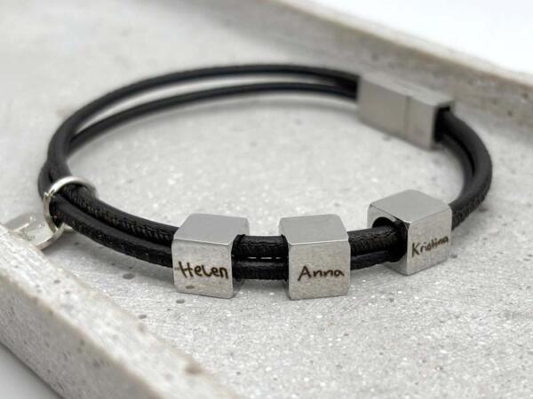 Armband aus feinstem Nappaleder personalisierbarem Gravur-Würfel, wählbar