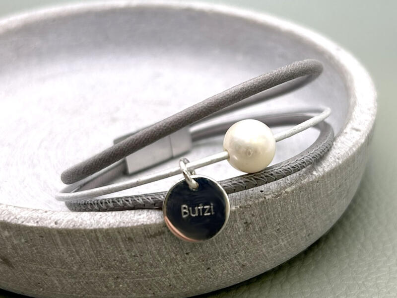 Lederarmband aus feinstem Nappaleder mit echter Süßwasserperle und wählbarem Gravuranhänger