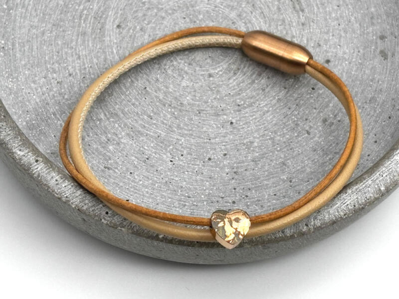 Goldenes Lederarmband aus Nappaleder mit Gravur Möglichkeit, Gravurherz wählbar