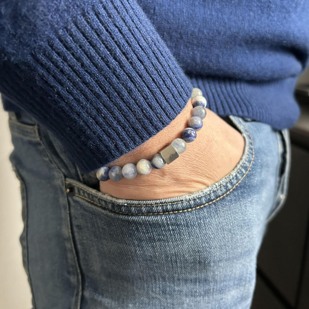 Die blaue Perle ist wunderschön. Das Armband ist wertig und der Würfel toll graviert.