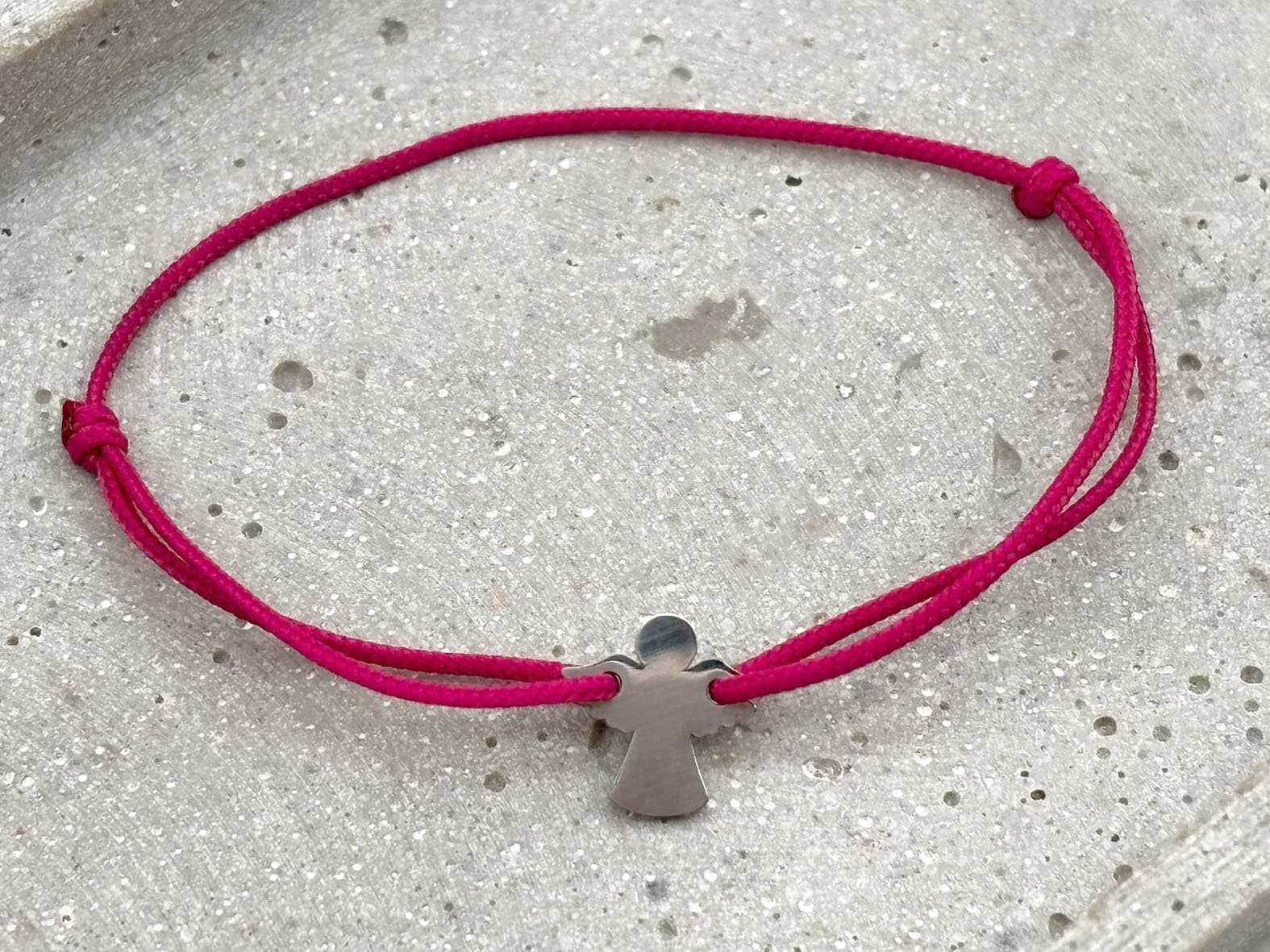 Das filigrane Armband wird aus Segeltau gefertigt, ist größenverstellbar und durch ein Engel Gravur Plättchen aus Edelstahl ergänzt. Wählen Sie Ihre Wunschgravur und machen Sie aus dem Armband ein individuelles Unikat. Das Armband eignet sich wunderbar als persönliches Geschenk. Das Segeltau kann aus verschiedenen Farben ausgewählt werden, somit ist für jeden Geschmack etwas Passendes dabei! Verschenken Sie es als “Schutzengel Armband” für Kinder.
