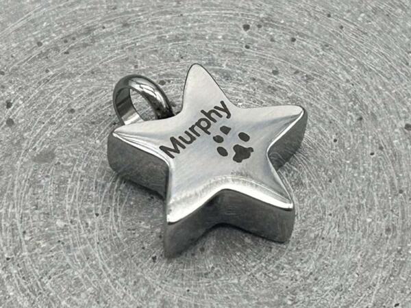 Erinnerungsschmuck mit Gravur, Stern Kapsel zur Aufbewahrung von Asche, Sand, Fell etc.
