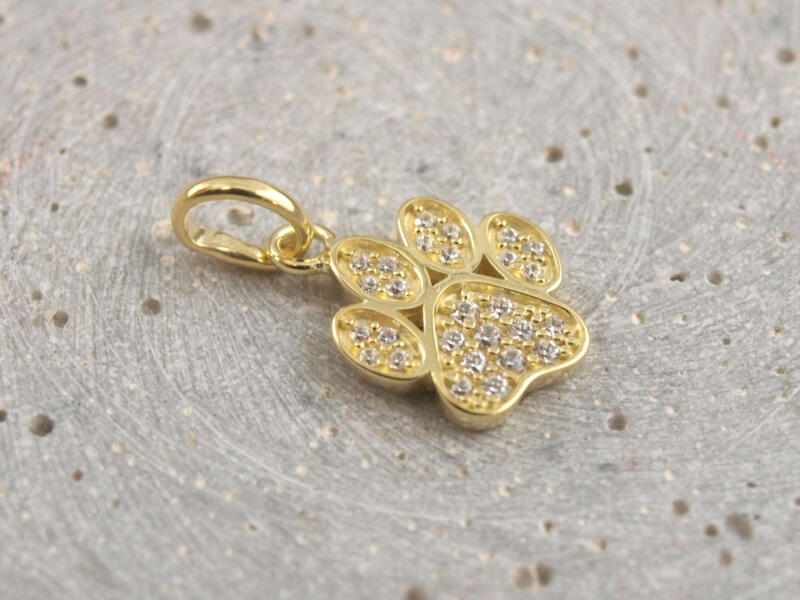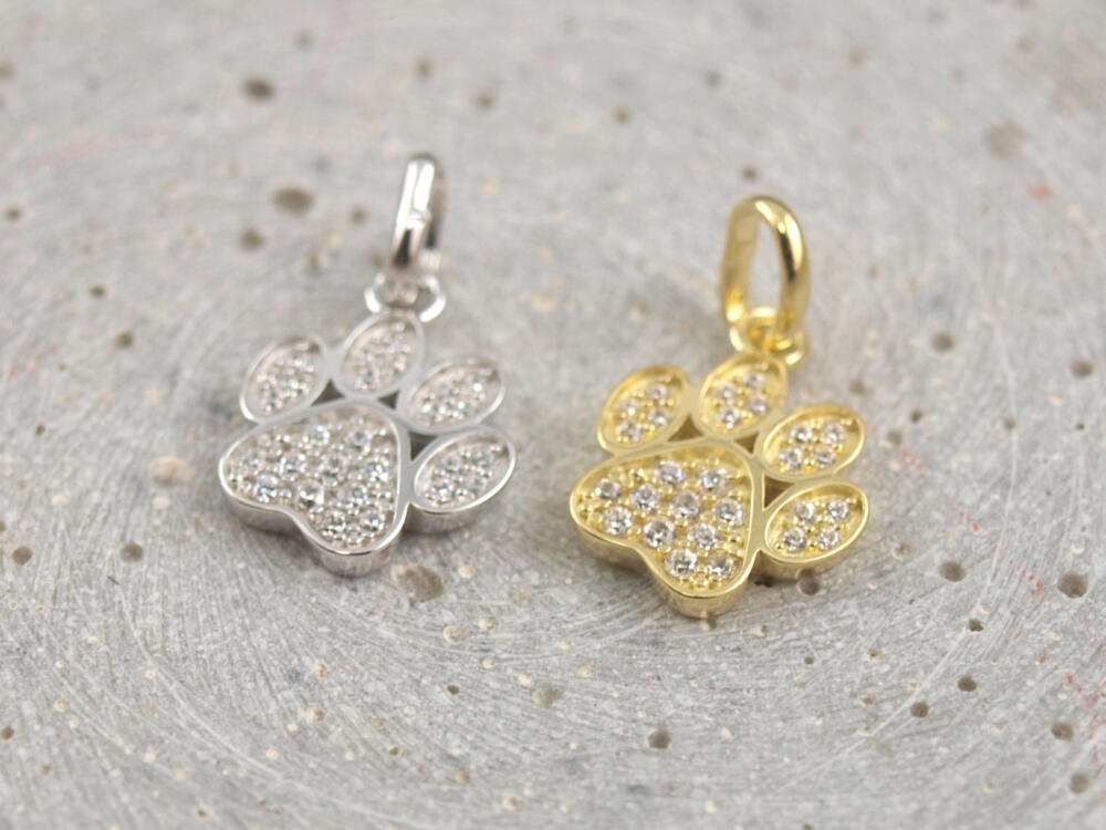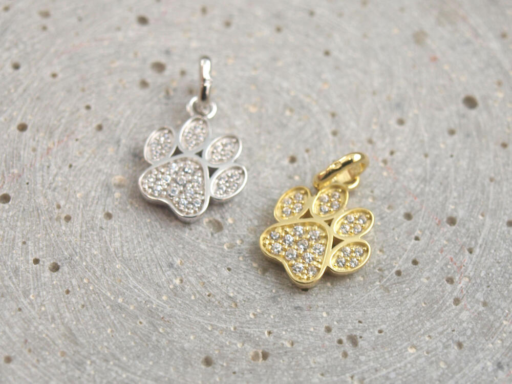 Bitte beachten Sie, dass sich eine Vergoldung im täglichen Gebrauch abschwächen kann. Diese materialtypische Veränderung stellt keinen Mangel dar, weshalb wir bei Edler Pfotenanhänger mit Kristallen keine Garantie auf Abnutzung gewähren. Wenn Sie hier Bedenken haben, entscheiden Sie sich gern für Silber. Eine sorgfältige Pflege trägt wesentlich zum Erhalt bei. Wenn Sie unsicher sind, beraten wir Sie gerne