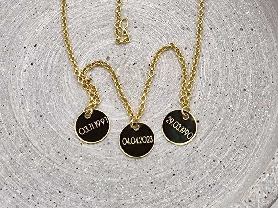 Produktdetails für die echt goldene Familienkette mit Gravur-Anhängern: