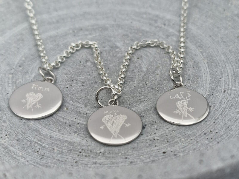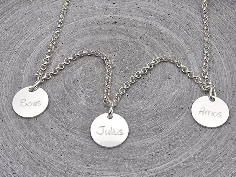 Suchen Sie noch ein Geschenk für Oma? Oder vielleicht für Ihre Frau? Oder vielleicht für die Tante? Diese Kette mit runden Gravur-Anhängern ist ein sehr persönliches Geschenk für alle Mütter. Als Geschenk zur Geburt, persönliches Weihnachtsgeschenk oder Muttertagsgeschenk zum Beispiel. Auf den Gravurplättchen können die Namen der Kinder, Enkelkinder oder deren Geburtsdaten und hübsche Symbole eingraviert werden. So trägt die stolze Mama Ihre Lieben nahe am Herzen bei sich.