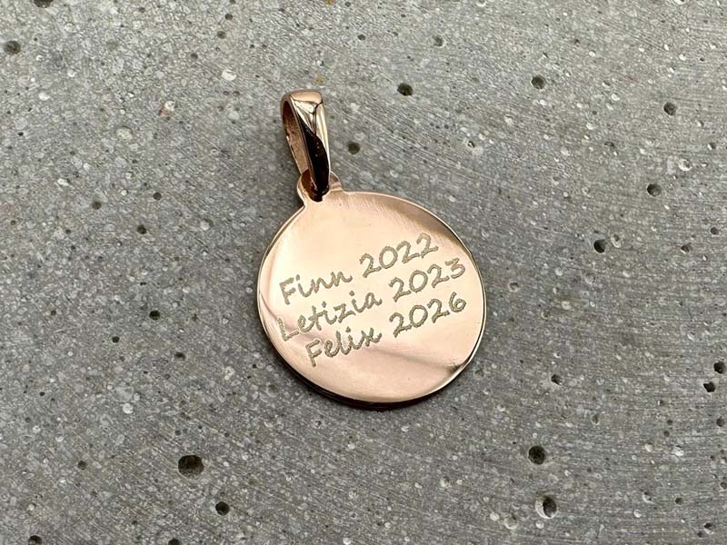Gravuranhänger aus 333er Gold in Roségold – rund und individuell personalisierbar