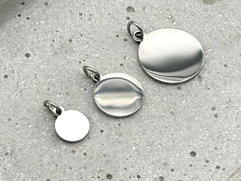Runder Gravuranhänger aus Edelstahl, Silber