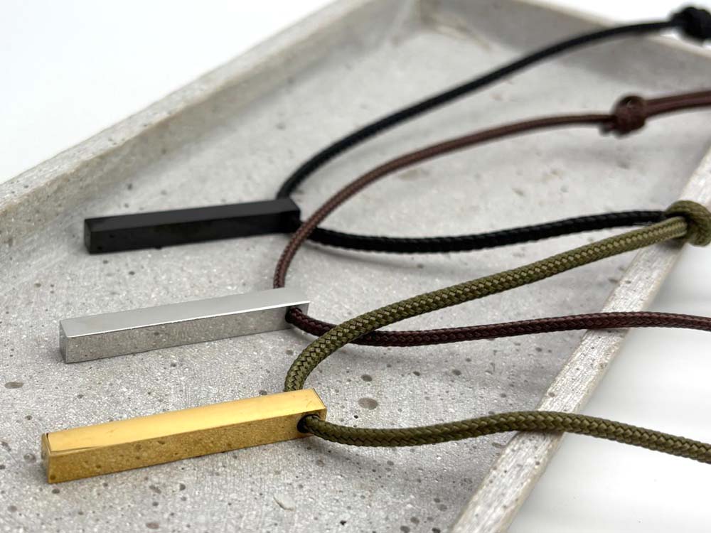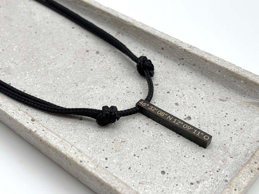 Diese moderne Herrenkette kombiniert klares Design mit persönlicher Bedeutung. Der schlichte Gravur Stab aus hochwertigem Edelstahl wird an einer robusten Textilkordel getragen und lässt sich individuell gestalten. Ob Koordinaten, Namen, Initialen, ein Datum oder ein kurzer Schriftzug – die Gravur macht aus der Kette ein persönliches Schmuckstück mit Aussage.