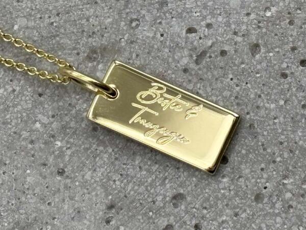 - Collier mit viereckigem Gravurplättchen in gold