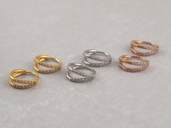 Ohrclicker Creolen aus Chirurgenstahl mit zwei Ringen und Kristallen
