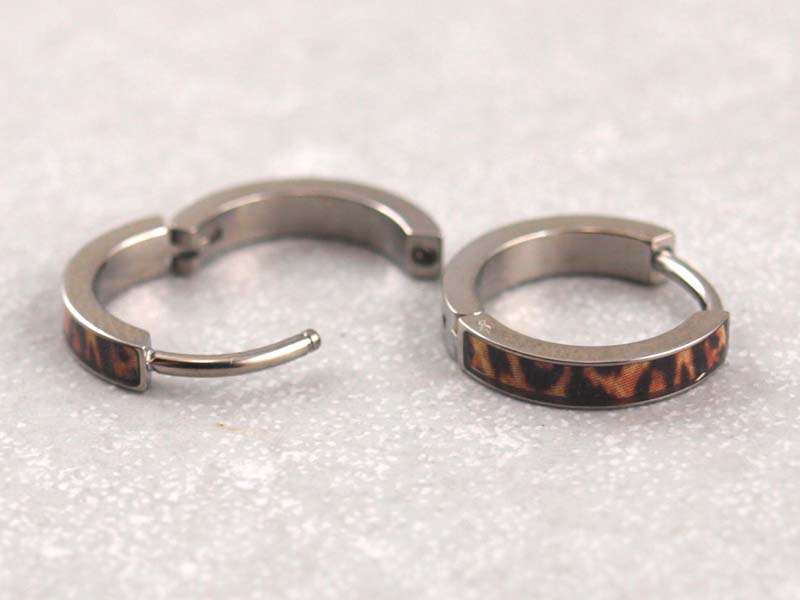Titan Creolen mit Leopardenmuster, Ohrclicker