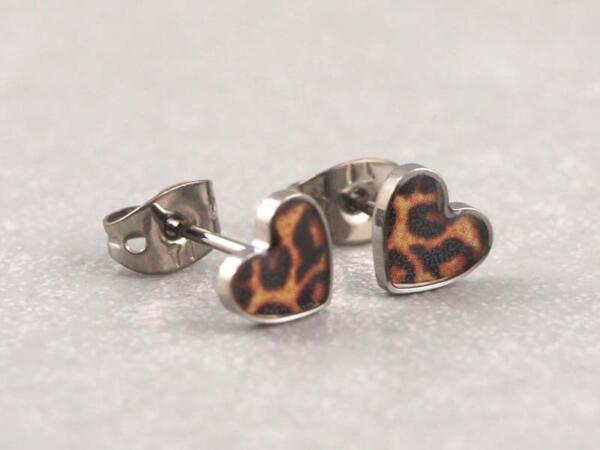 Titan Herz Ohrringe mit Leopard Muster, nickelfrei