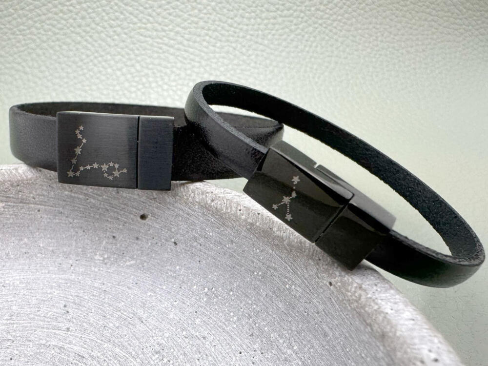Schmales und breites Freundschaftsarmband aus Leder mit Gravur