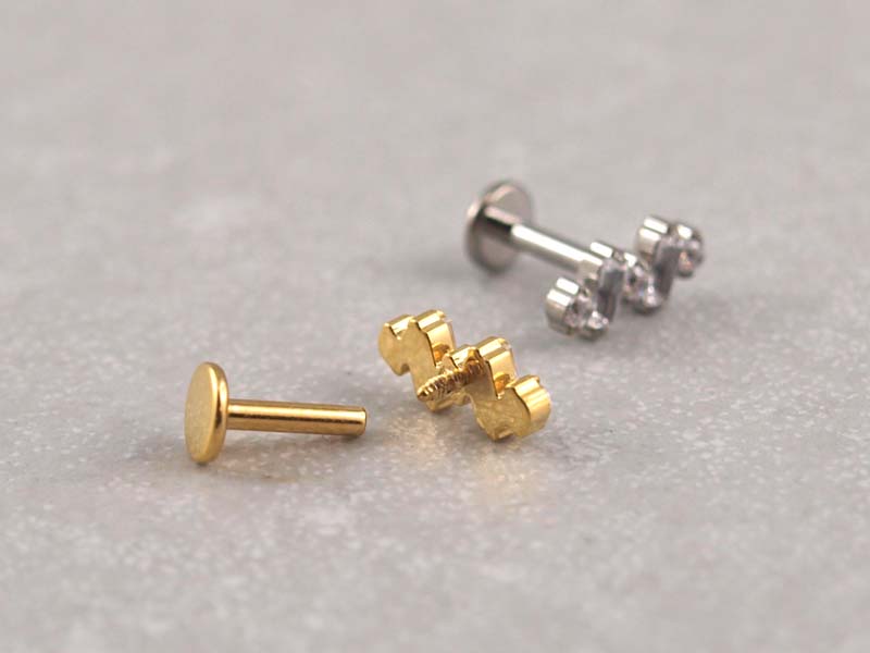 Titan Labret mit eingefassten Kristallen und Innengewinde