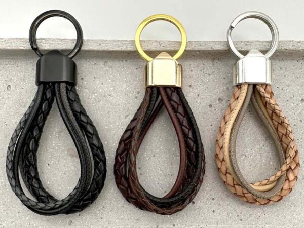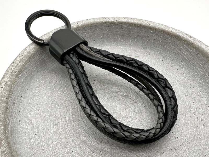Leder Schlüsselanhänger mit Gravur, geflochtene Lederbänder, 3 Farben