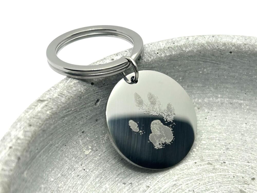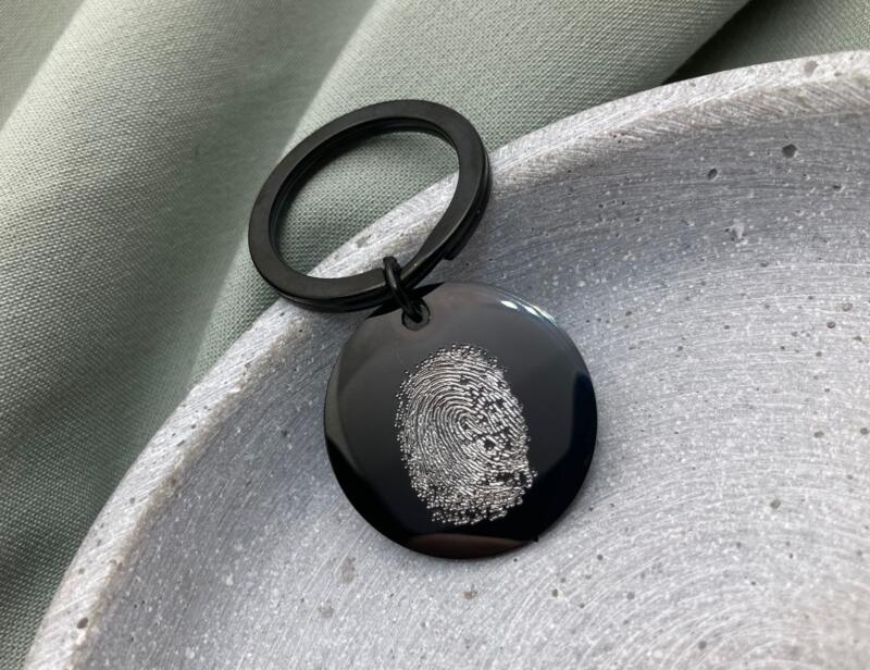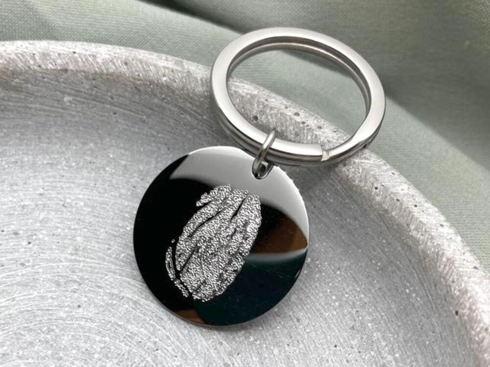 Runder Schlüsselanhänger aus Edelstahl, Fingerabdruck